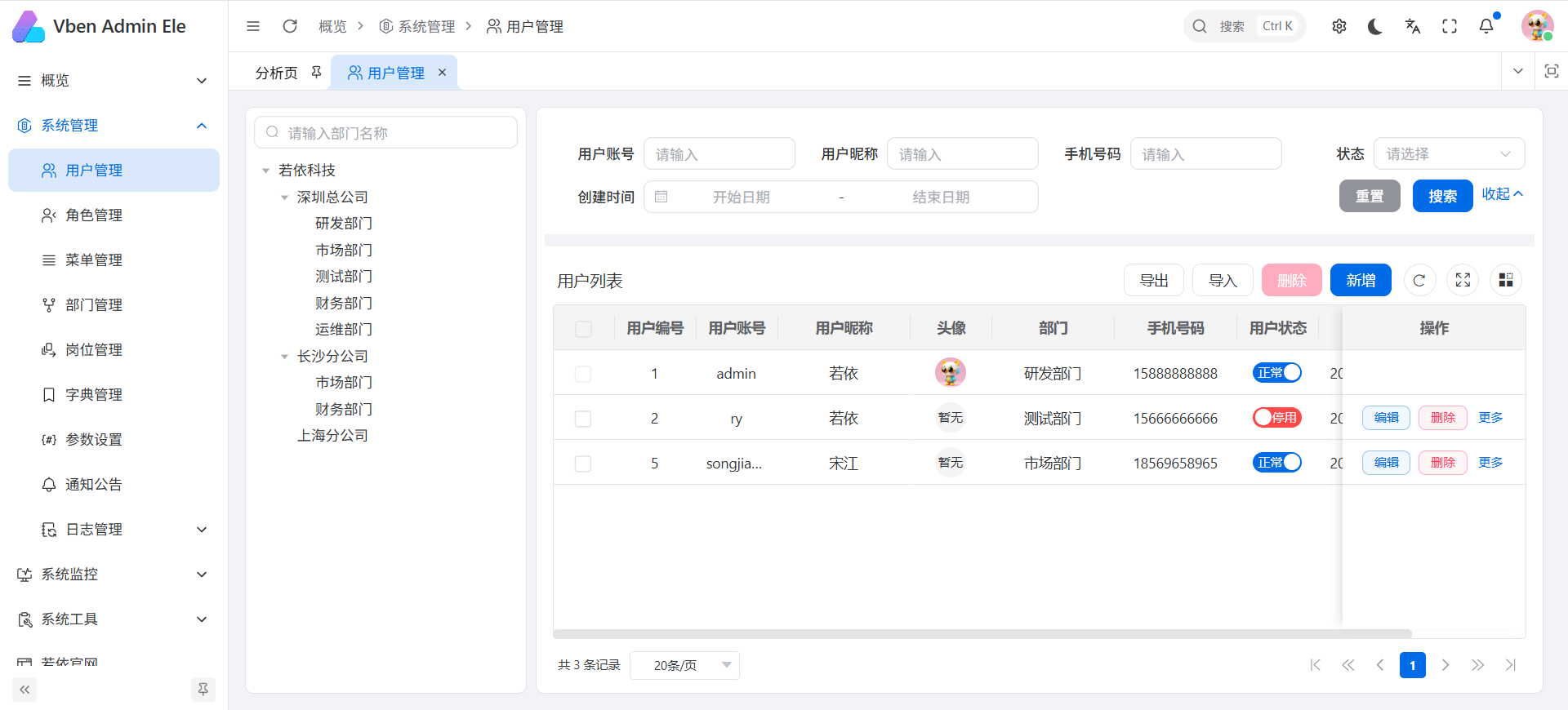 基于 vben5 & element-plus 的 RuoYi-Vue 前端项目